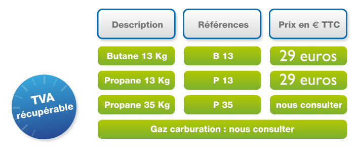 Vous trouverez ci-dessous le tableau tarifaire des différents produits proposés par Gazdom - Lyon